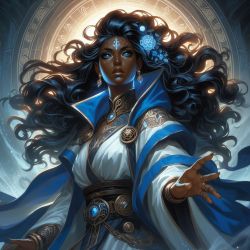 She studies Arista's amulet and is greatly upset by something she finds. She allows Arista entry to the royal palace on two conditions: Arista must not take the amulet off and she must not draw attention to it.